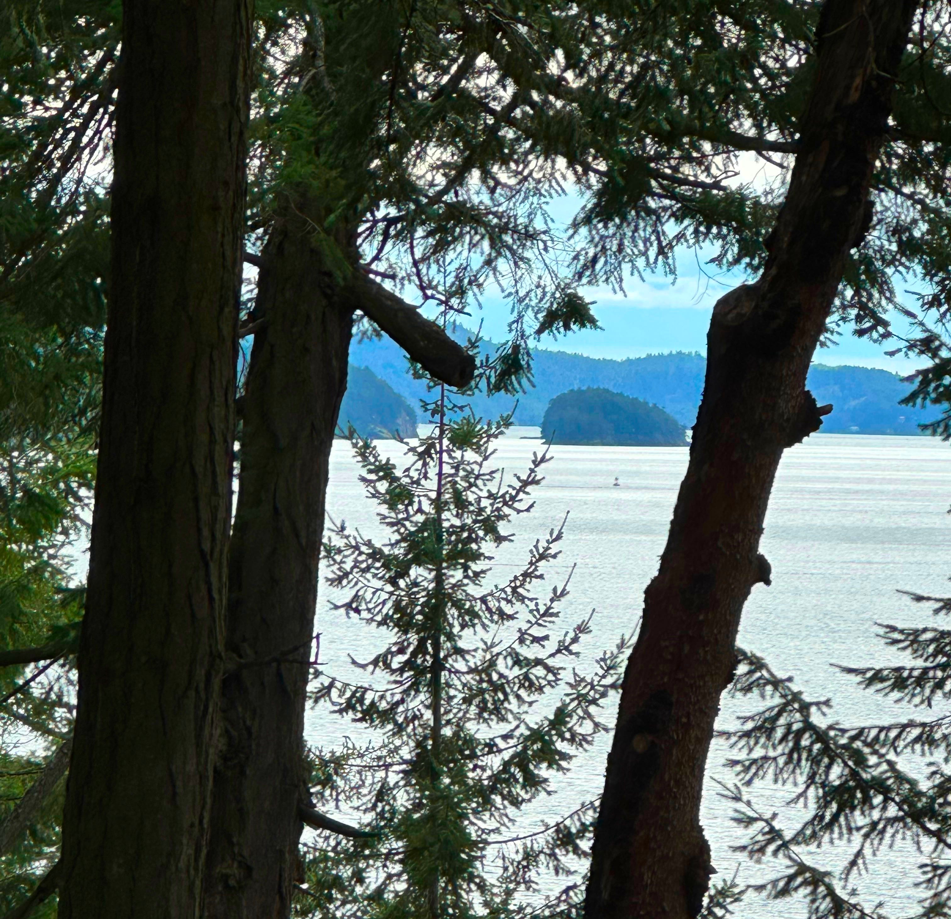 Past the overcast sky and the sea beyond the trees and the neighbours’ houses across the road, I spy the small rock island in the bay. Depending on the conditions of the air and season, it appears to come closer then farther away. I see it large some mornings, small other times, and there are moments when the sun breaks brightly to shine only on the water near it, or sometimes a ferry goes past it and I get a sense of the scale of the thing. I’m naming this “Writing Island”. From now on, when I look at it, I can see it as a reminder to write sometime. It is small but comes into view every day when the world clears away.