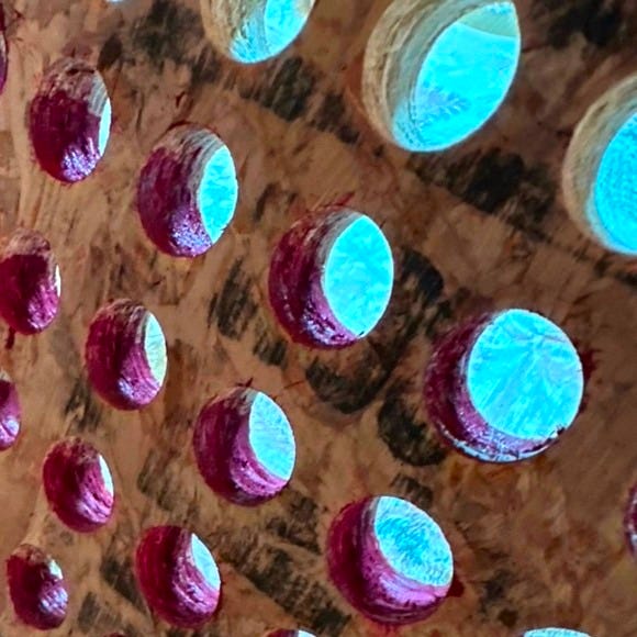 This morning, I see how the pile of clothes waiting to be washed disturbs the space on the black and white tile patterned floor. Above, the skylight shows treetops in the overcast day. But I leave that basket and clothes pile for now as I want to write. In the kitchen, dishes from breakfast and last night’s dessert are in the sink, while the dishwasher is filled with yesterday’s newly washed. Not yet. Not till after the writing. In the living room, panels wait to be painted - the holes of these panels1, to be precise - stacked at the round black table. The work area is covered in home depot plastic sheeting, but the light is off, and I’m not doing it just yet. Now, you see, I have to write.