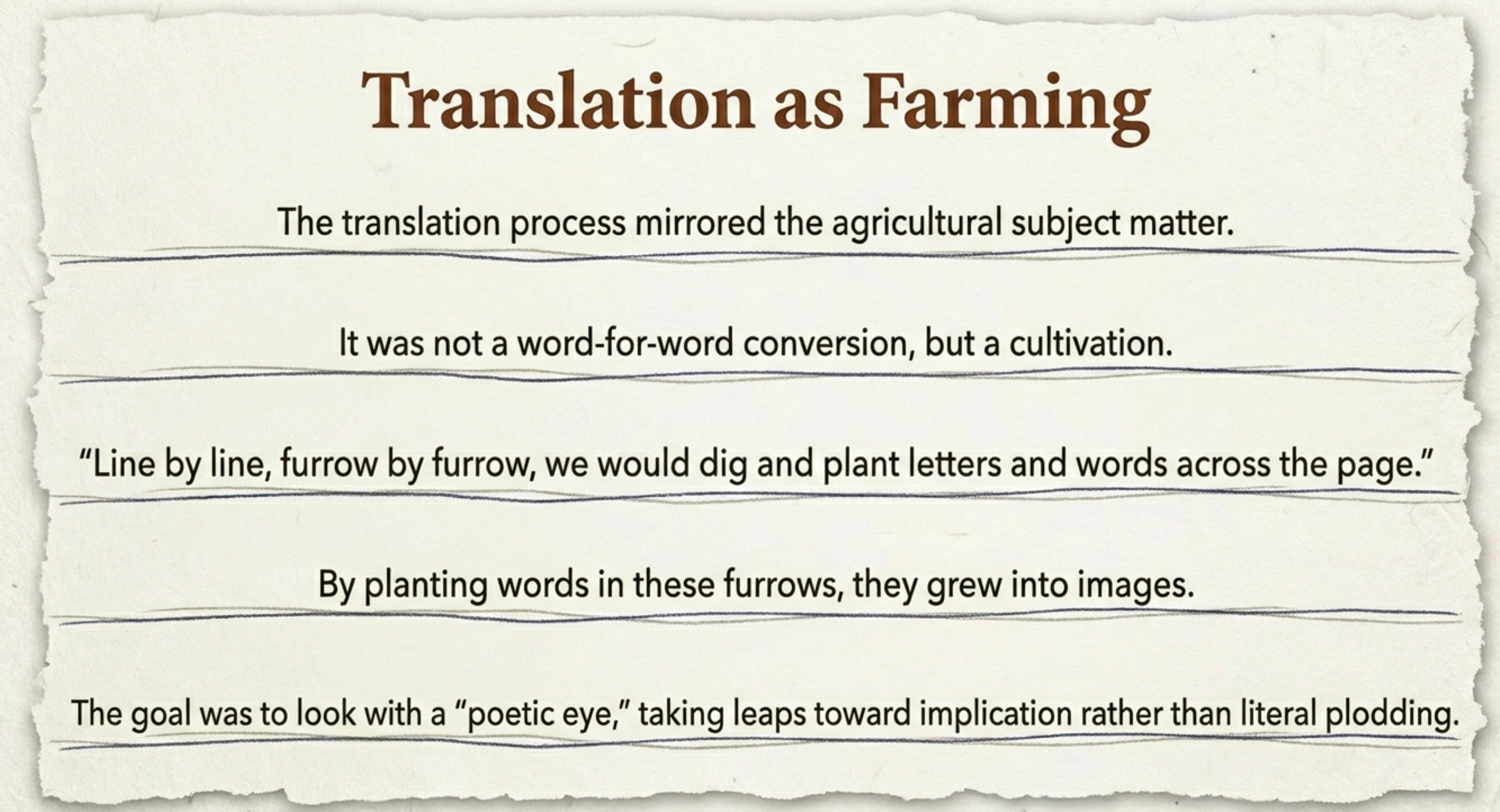 Fascinating project to translate poetry from a language you know little of.